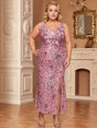 Shine bright in our plus size ruched sequin bodycon gown! Designed with high stretch fabric for a flattering and comfortable fit, this dazzling piece features a chic ruched design and shimmering sequins that catch the light beautifully. The elegant slit adds a touch of allure, making it perfect for formal events or glamorous nights out. With its curve-enhancing silhouette, you’ll be the center of attention at every occasion.